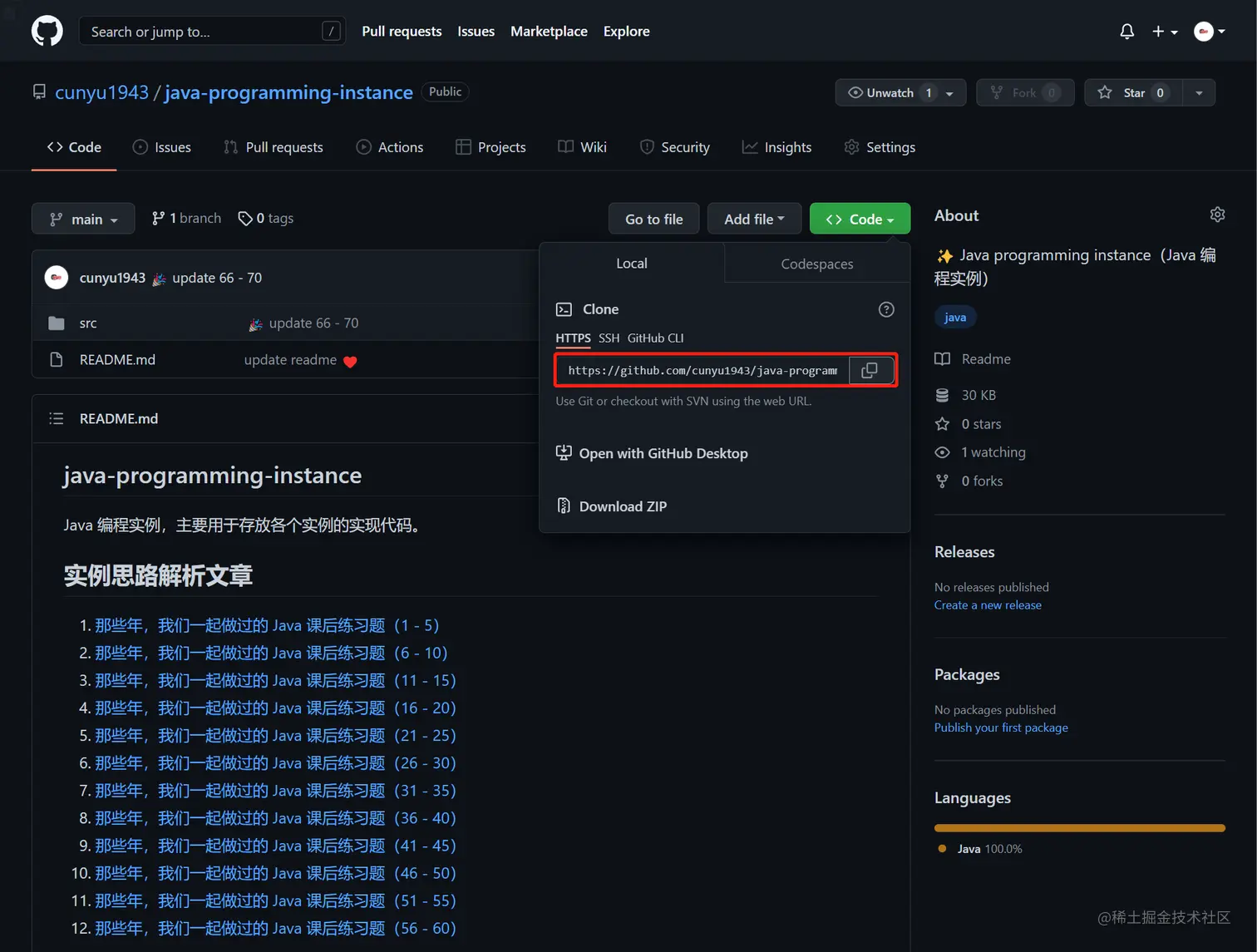 git clone https://github.com/cunyu1943/java-programming-instance.git