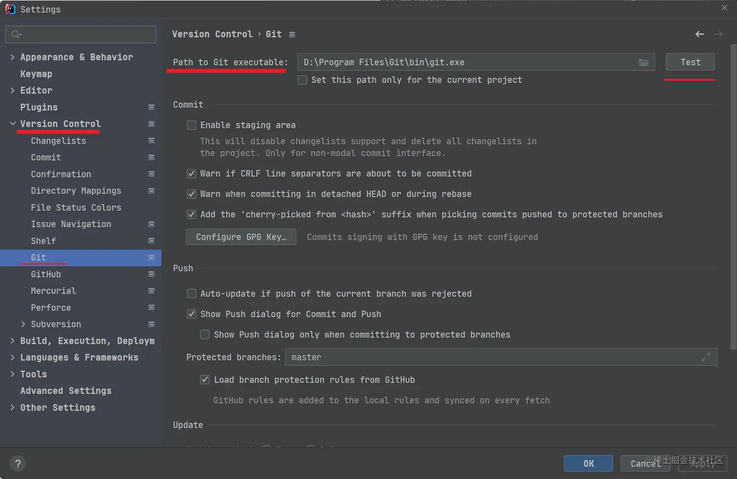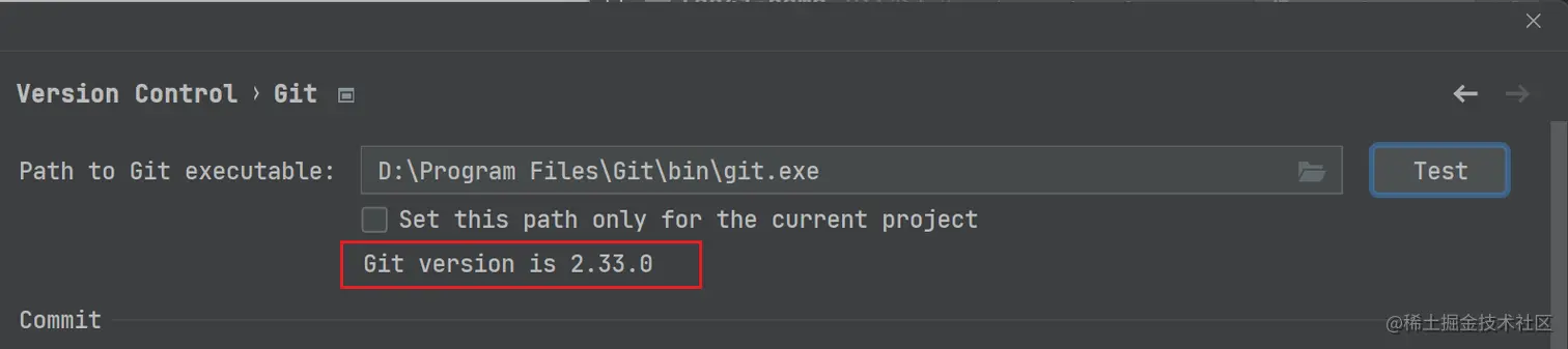 设置完成之后,点击右方的 Test,如果 Git 安装成功且路径正确,就会弹出如下的提示信息,说明我们的配置也就成功了。