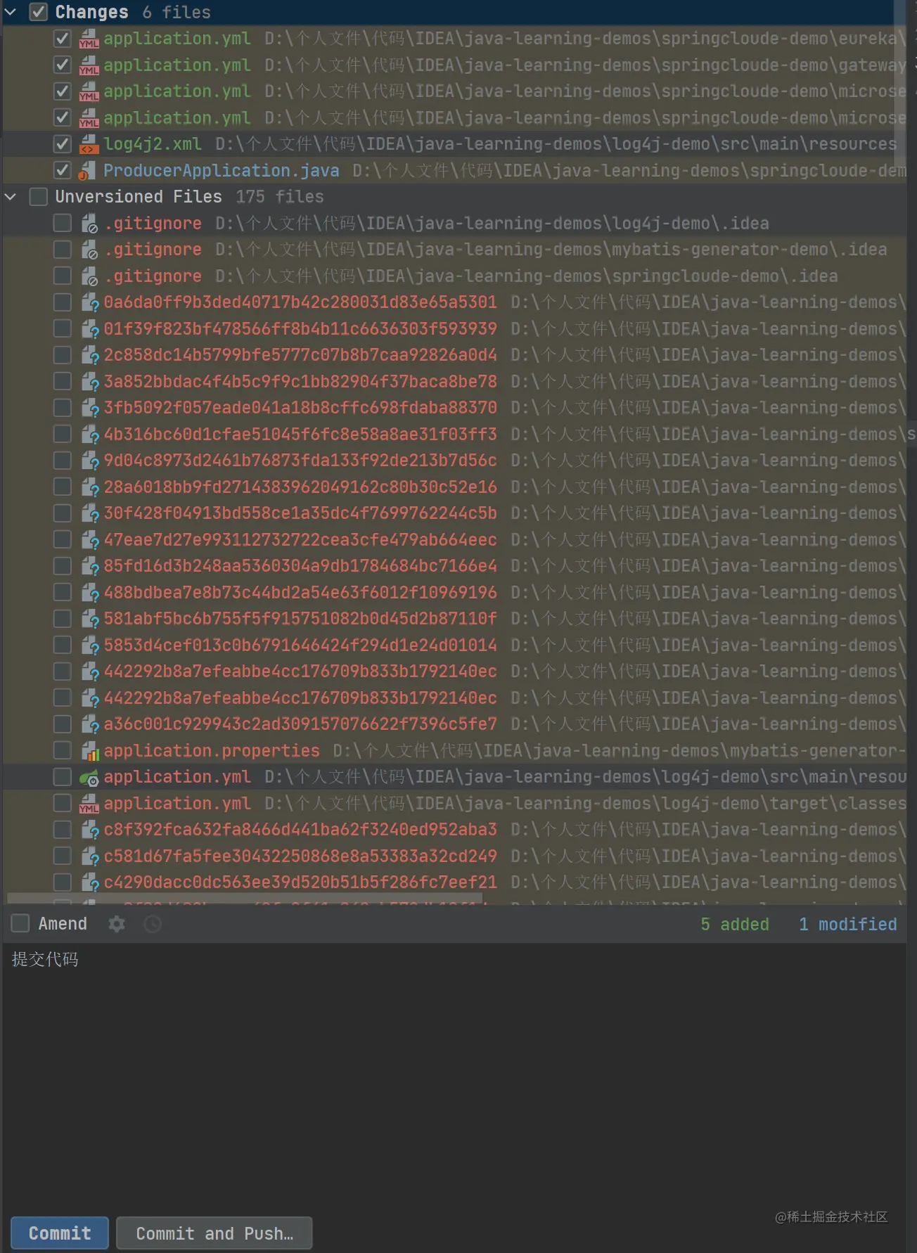 完成勾选我们需要提交的代码文件以及填写提交信息后,我们就可以点击 commit 按钮完成代码提交。