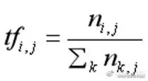 其中,TF词频的计算公式如下,ni,j 为特征词 ti 在训练文本 Dj 中出现的次数,分母是文本 Dj 中所有特征词的个数,计算的结果即为某个特征词的词频。