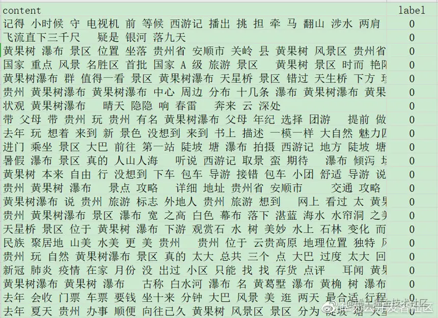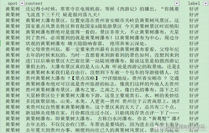 下面是从大众点评、美团之类的网站抓取“黄果树瀑布”的评论信息,我们通过Jieba工具对其进行中文分词。