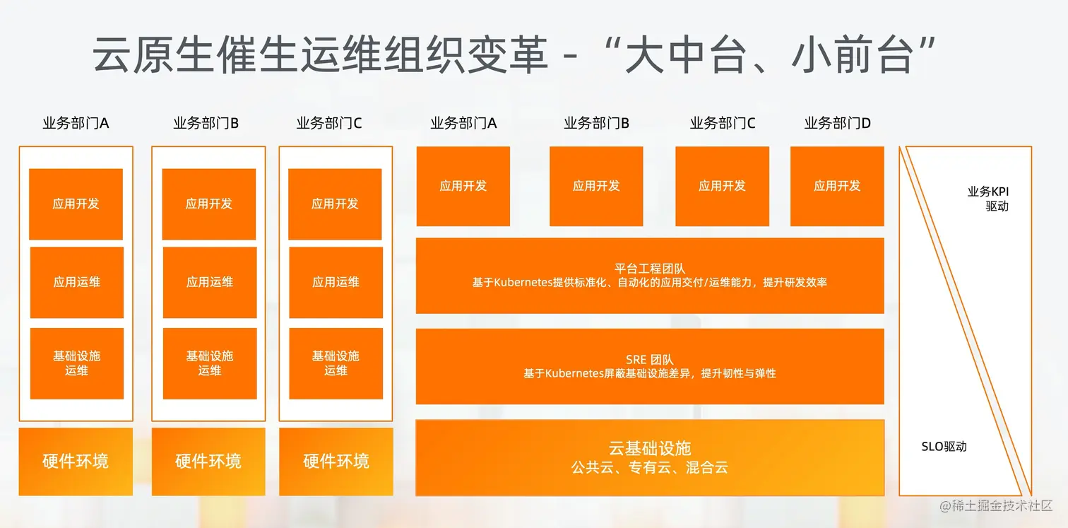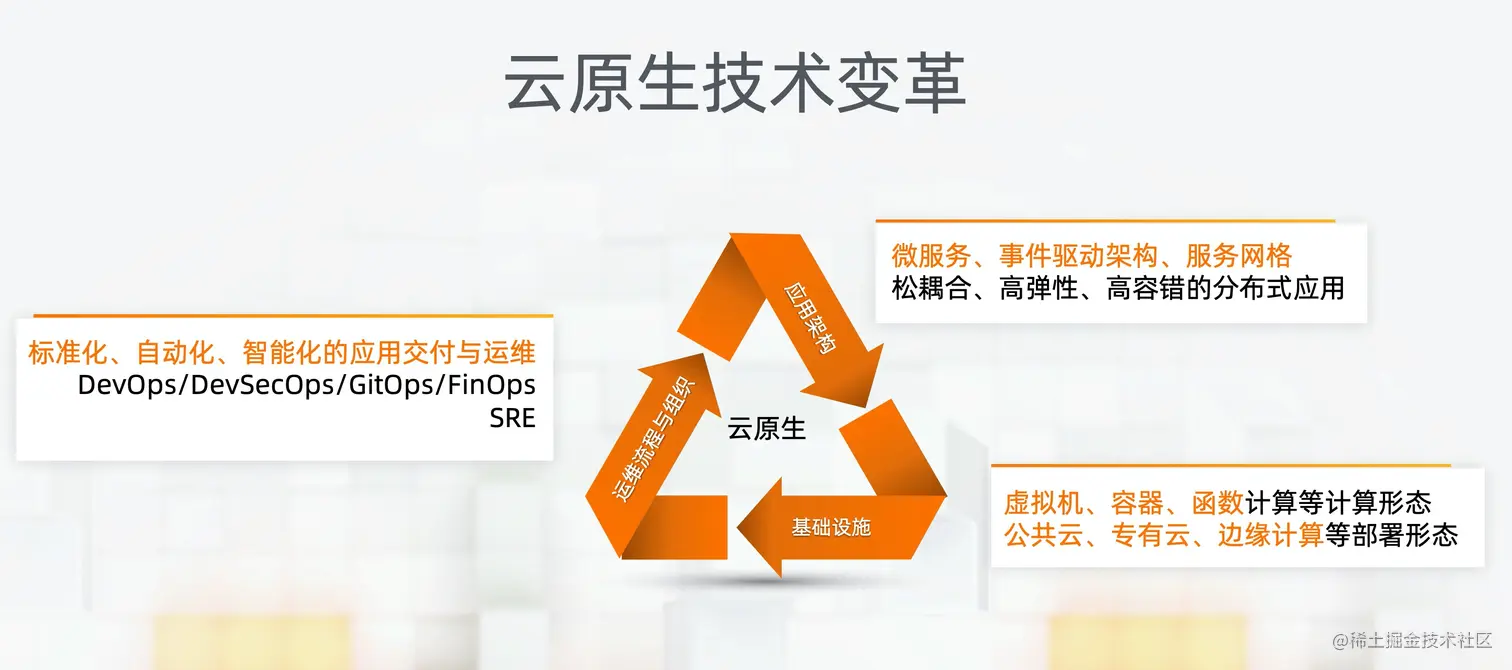 - 最后是组织、文化和流程的变化。比如 DevOps、DevSecOps、FinOps、 SRE 等理念持续推动现代化的软件开发流程和组织升级。