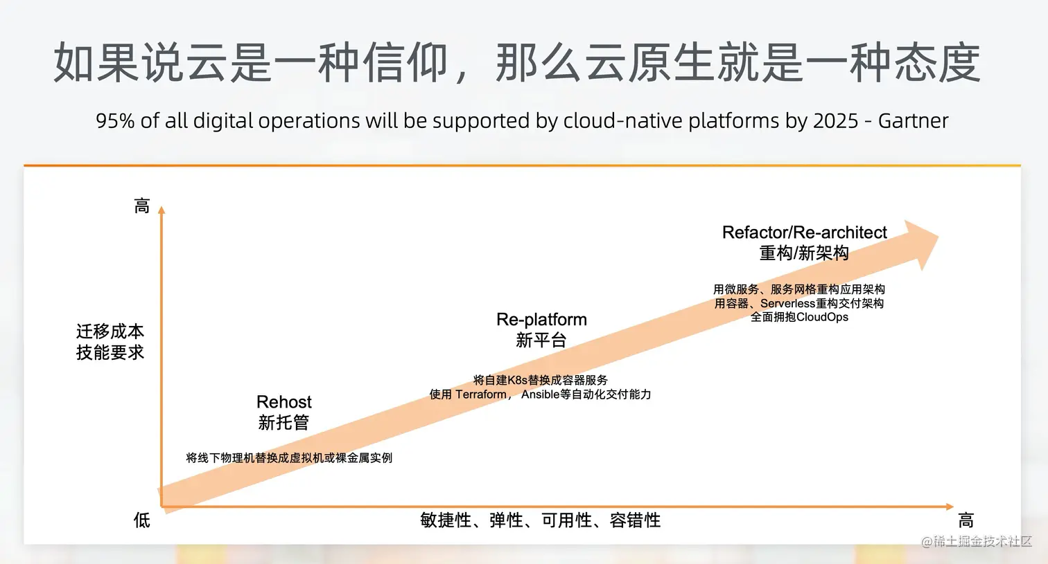 云原生已经成为势不可挡的技术趋势。Gartner 预测到 2025 年,95%数字化运维将通过云原生平台进行支撑。