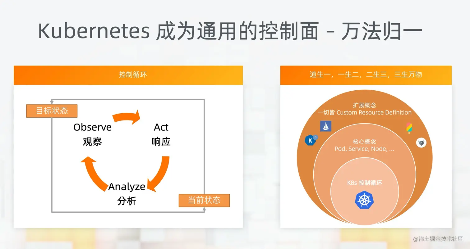 最后,K8s 提供平台无关的技术抽象:如 CNI 网络插件, CSI 存储插件等等,可以对上层业务应用屏蔽基础设施差异。05