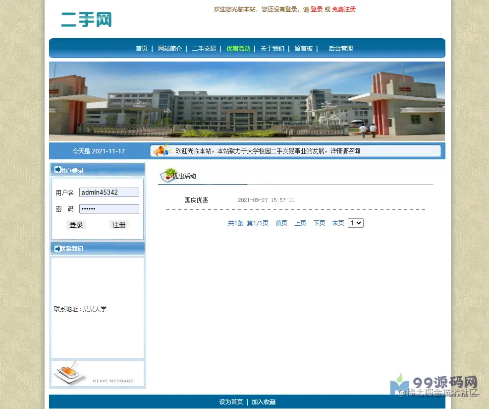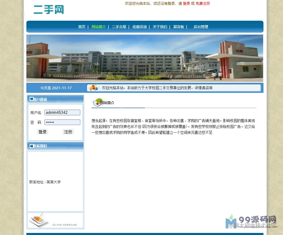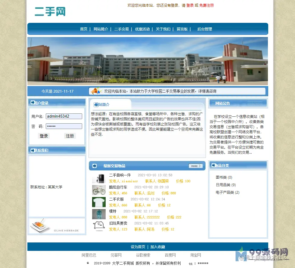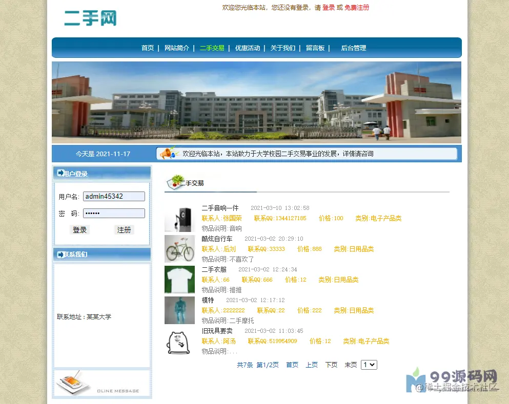 本系统为基于jsp+mysql的校园二手物品交易网站,包含前后台,游客、用户(学生)和管理员权限,功能如下: