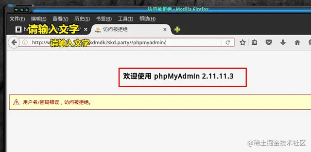 尝试登录phpmyadmin ,各种弱口令常识无果,,发现版本是2.11.11.3,