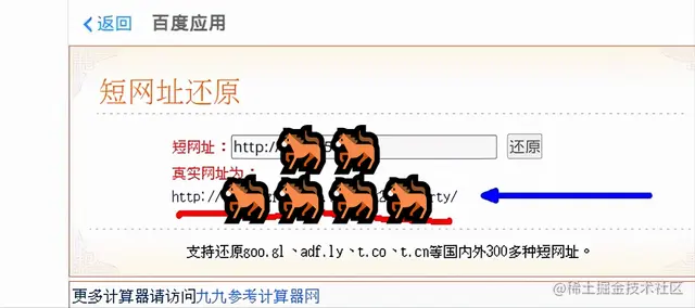 在把这个缩短后的短网站还原成真实的网址,如上图所示,这就是为什么我们手机扫描二维码,