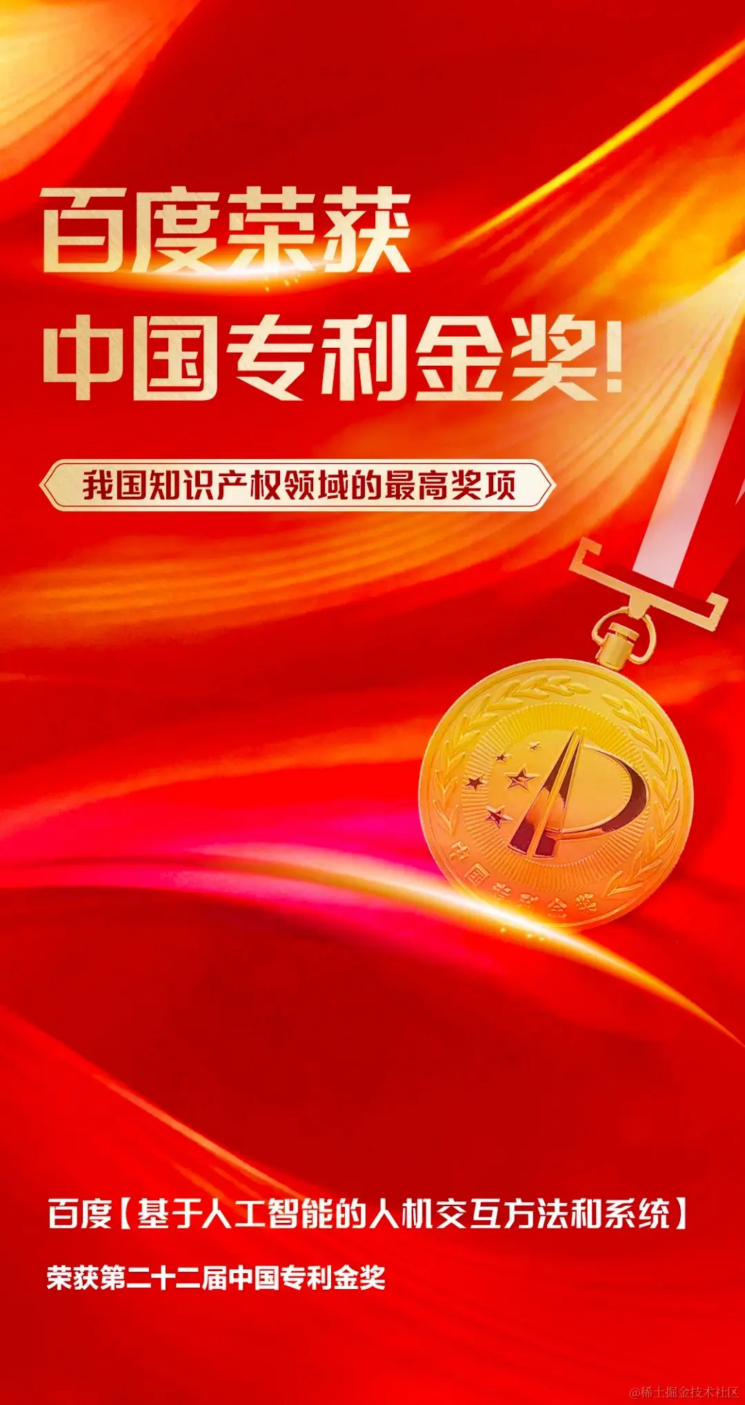 记者12月31日从国家知识产权局获悉,于线上举办的第二十二届中国专利奖颁奖活动上,以百度 CTO 王海峰为第一发明人的专利——《基于人工智能的人机交互方法和系统》(ZL201510563338.2)荣获中国专利金奖。统计数据显示,百度 AI 专利申请和授予量连续四年稳居全国第一。