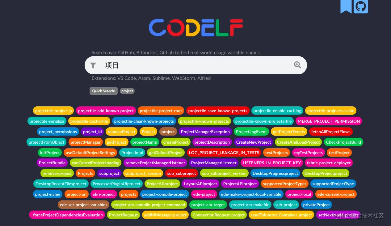 还在为变量命名而烦恼吗?这个网站可以彻底解救你。它会搜索 GitHub,Bitbucket,GitLib 等开源平台上的项目源码,找出和搜索内容最匹配的变量名。