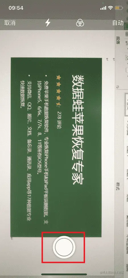 第三步:将要扫描的文稿放在取景框中进行拍摄。