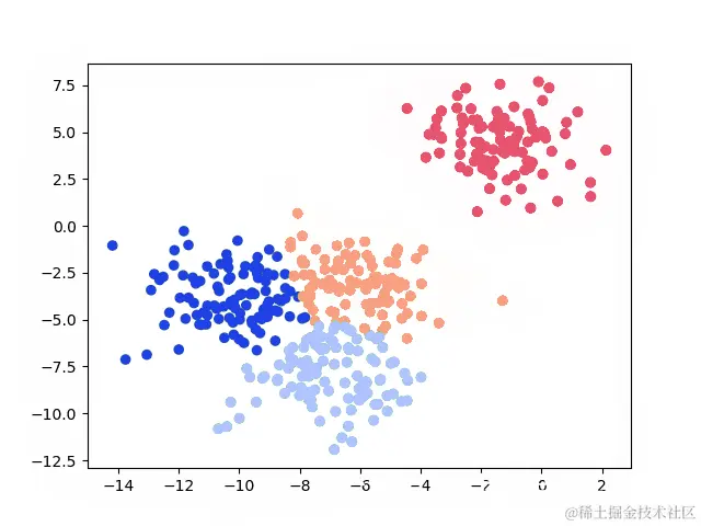 我们将通过使用 make_blob() 函数生成一个简单的数据集并在图中将其可视化。