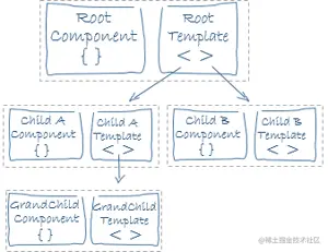 组件(component) 类及其关联的模板(template)定义了一个视图。具体实现上,视图由一个与该组件相关的ViewRef实例表示。