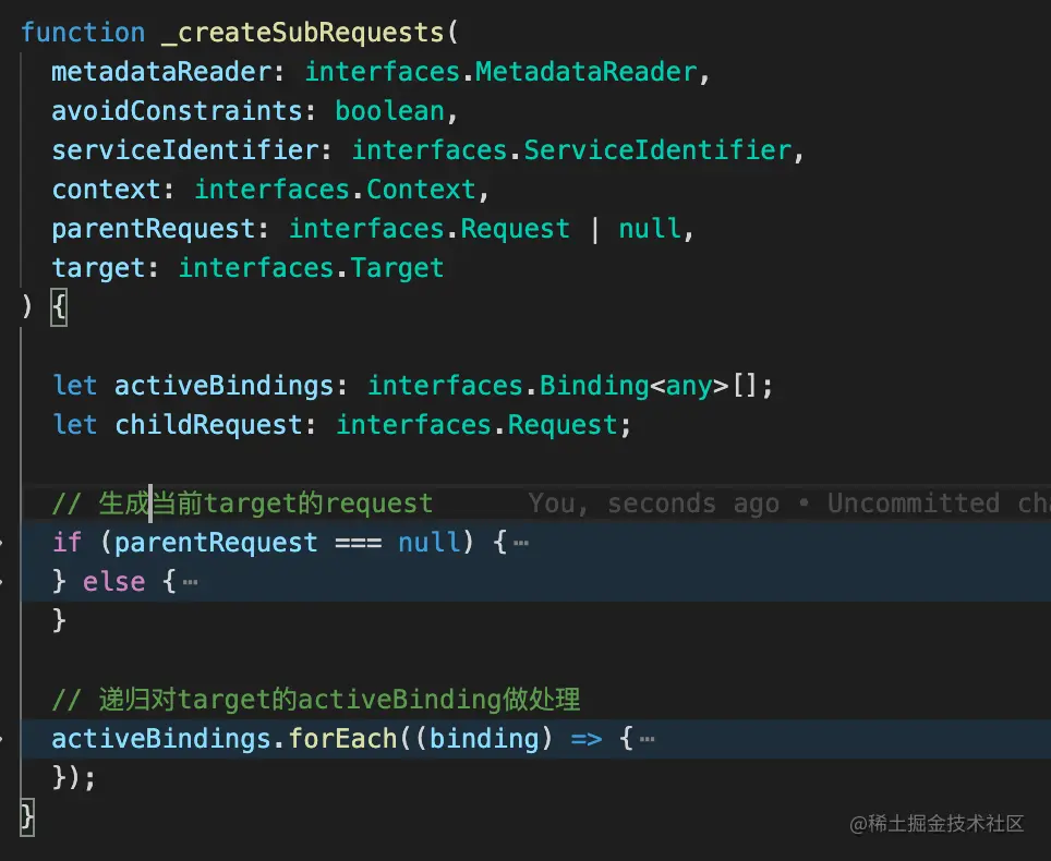 在InversifyJs中我们用injectable装饰器来标志一个类是否是可依赖注入的,用inject来标志要注入的依赖类型,在解析阶段的时候会根据inject的参数在容器中查找依赖并注入。