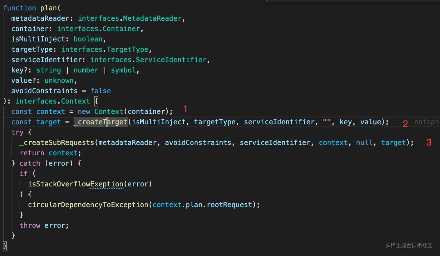 _planAndResolve时,当处理完planning阶段获取到上下文后,可以通过中间件重写拦截器contextInterceptor,劫持context并实现一些劫持方法源码链接(eg:inversify-logger-middleware)