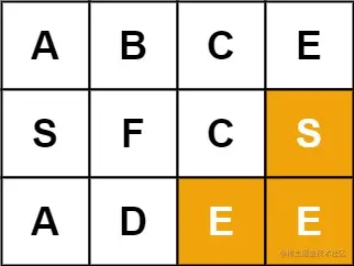 输入: board = [["A","B","C","E"],["S","F","C","S"],["A","D","E","E"]], word = "SEE"