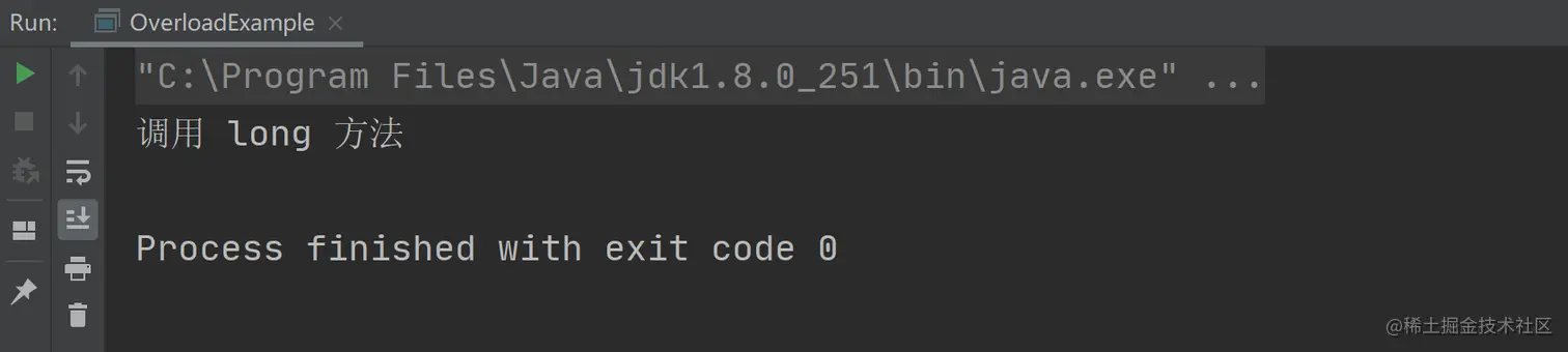 如果是基本数据类型,那么方法重载调用的第 2 匹配原则是自动转换成更大的基本数据类型,如以下代码: