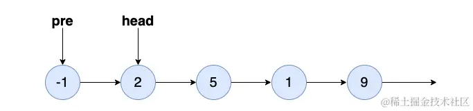 ListNode pre = new ListNode(-1);