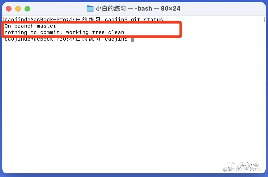 执行完成后,我们仍然可以执行“查看状态”的命令。大概长成下图框选所示,表明已经提交成功啦。