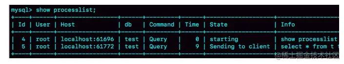 若客户端使用–quick参数,会使用mysql_use_result方法:读一行处理一行。假设某业务的逻辑较复杂,每读一行数据以后要处理的逻辑若很慢,就会导致客户端要过很久才取下一行数据,可能就会出现上图结果。