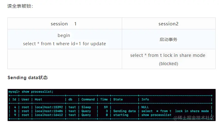 即“Sending data”并不一定是指“正在发送数据”,而可能是处于执行器过程中的任意阶段。比如,你可以构造一个锁等待场景,就能看到Sending data状态。
