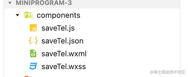 命名一个 ‘saveTel’ 的文件,就会生成组件相关的文件及基础配置