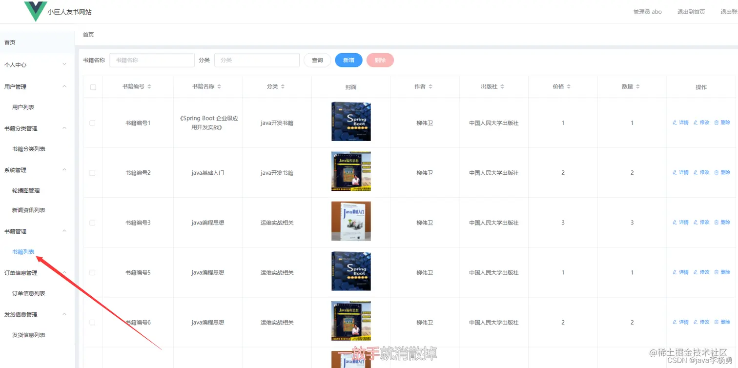 书籍列表管理:管理员可以添加、修改、删除和查询书籍列表信息