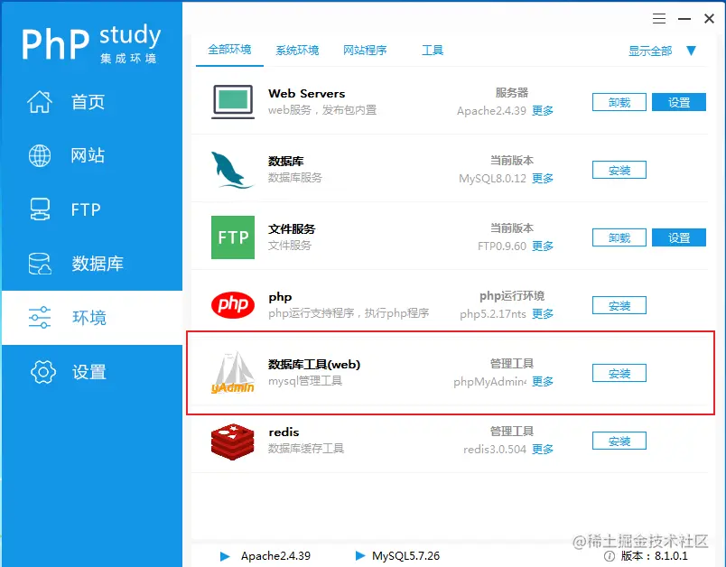 4.3 如果还需要管理数据库,可以安装这个phpAdmin,或者其他客户端管理数据库