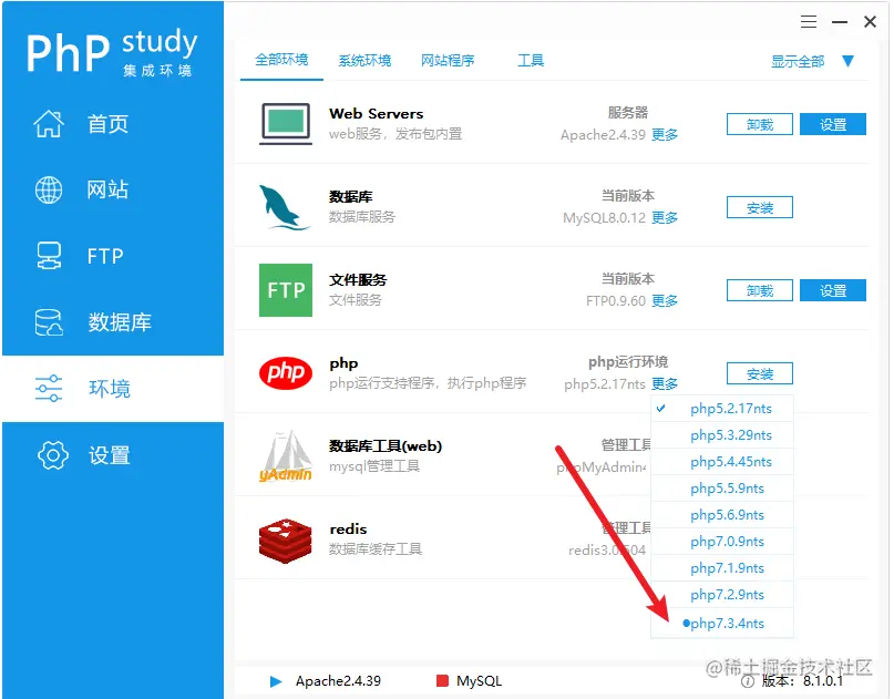 3. php环境,软件已经预装了php7.3.4了,所以直接测试看能否使用。