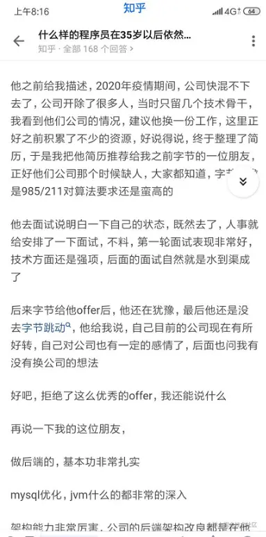 之前有看到过一篇这样的帖子:什么样的程序员在35岁以后依然被公司抢着要?