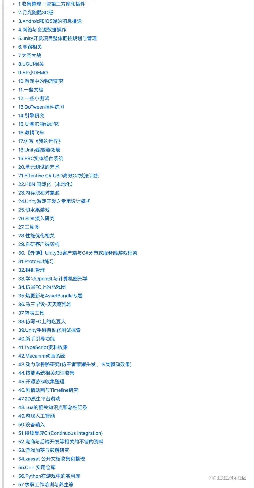 Unity3D 的练习项目,该练习项目总结了 57 个小项目。