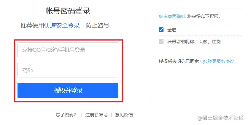 # 点击账号密码登录