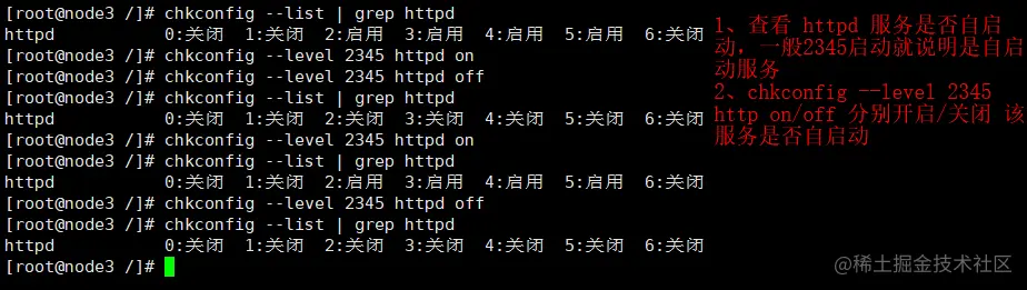 自启动也可以通过 chkconfig 服务名 on 来设置。还可以通过 ntsysv 配置。