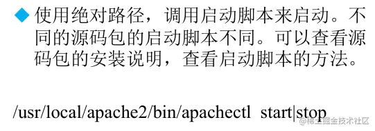 RPM 包和源码包启动服务的万能方法都可以通过 绝对路径/启动脚本 start 。而对于 RPM 包还可以通过 service 包名 start 来启动,源码包则需要经过配置才可以。造成启动方法的根本原因就是安装位置不同,RPM 包是有默认的安装位置的,而源码包则是需要手动指定安装位置。