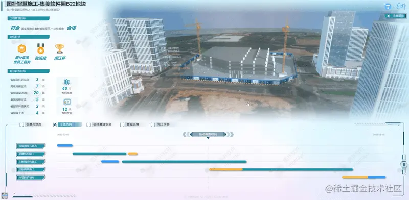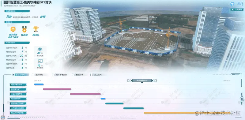 Hightopo 搭建的智慧施工可视化解决方案,支持智慧建筑施工多环节业务,实现“互联网+”与建筑工地的跨界融合,促进行业转型升级。