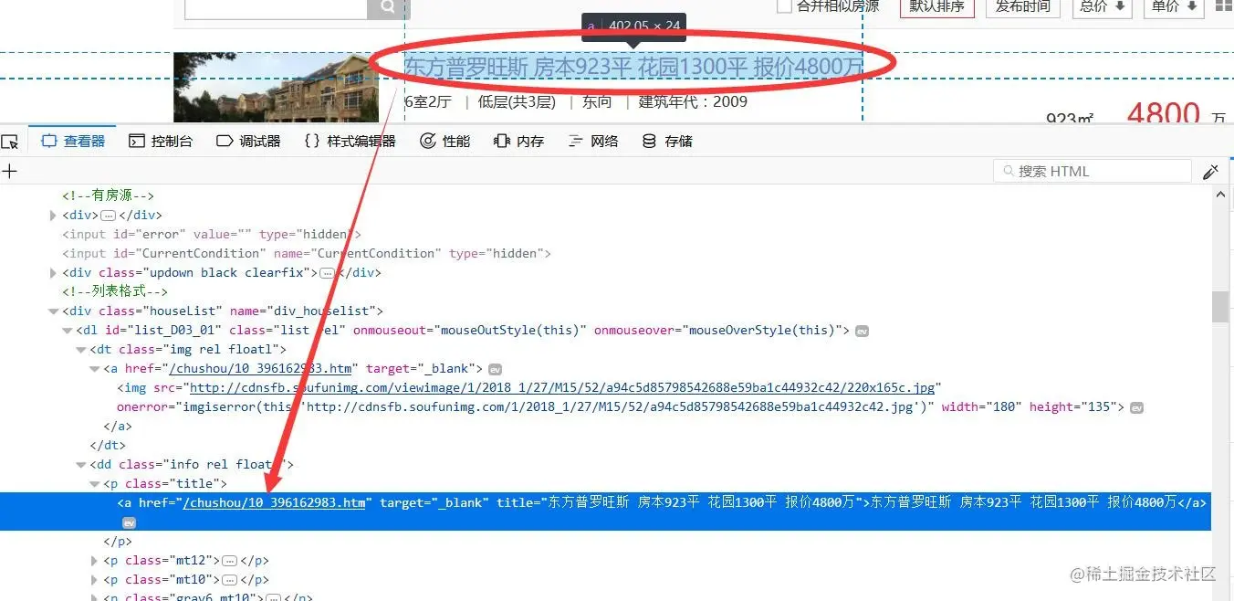 # 获取首页所有二手房的链接地址(相对地址)