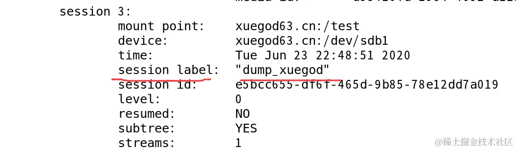-L : 备份的会话标签,这里写对此次备份的说明。如:dump_sdb1_v2 ,可以随意写。