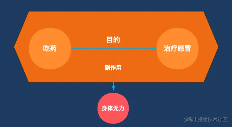 可以看到治疗感冒这一过程带来的副作用是身体无力。那么在治疗过程中我们干其他事情将受到身体无力的副作用而效率变低,这是一个对于我们不利的副作用,我们应该避免。