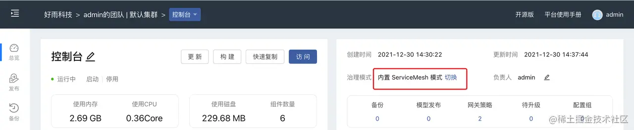 所以我们在切换治理模式时,需要去校验集群中是否已经部署过对应 ServiceMesh 框架的控制平面,这一步应该在切换时进行校验。如果未部署对应的控制平面,则不具有对应的治理能力。也就不能切换。