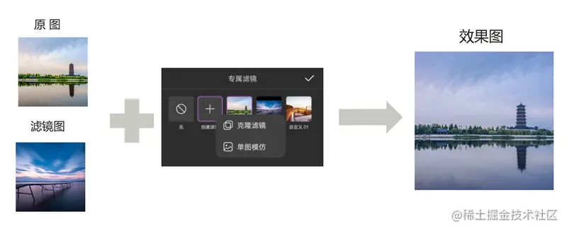 支持克隆滤镜和单图模仿,两个接口,可选择集成。克隆滤镜同时上传原图和滤镜图,复制效果更好;单图模仿只需上传滤镜图,操作更简单。