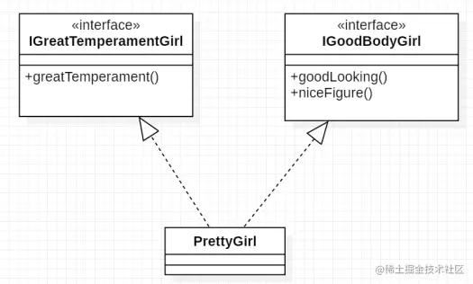 - 合成复用原则(Composite/Aggregate Reuse Principle, CARP)指尽量使用对象组合(has-a)或对象聚合(contanis-a)的方式实现代码复用,而不是用继承关系达到代码复用的目的。合成复用原则可以使系统更加灵活,降低类与类之间的耦合度,一个类的变化对其他类造成的影响相对较小。