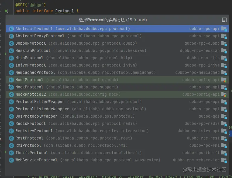 - protocol 远程调用层:封装 RPC 调用,以 Invocation, Result 为中心,扩展接口为 Protocol, Invoker, Exporter