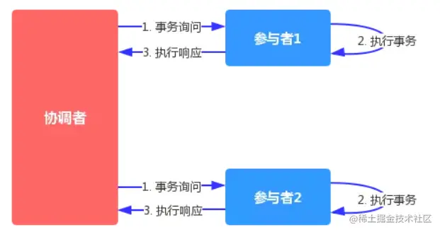 - 事务协调者请所有事务参与者进行投票:是否可以提交事务,然后等待所有参与者的投票结果;