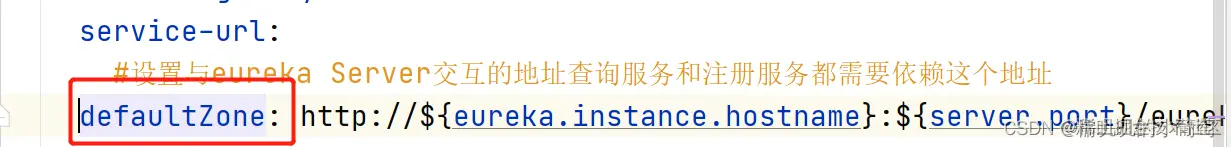 】,请检查application.yml,找到配置环境中的defaultZone,请仔细观察,service-url标签与defaultZone标签不能在同一级,defaultZone前需要有一个缩进: