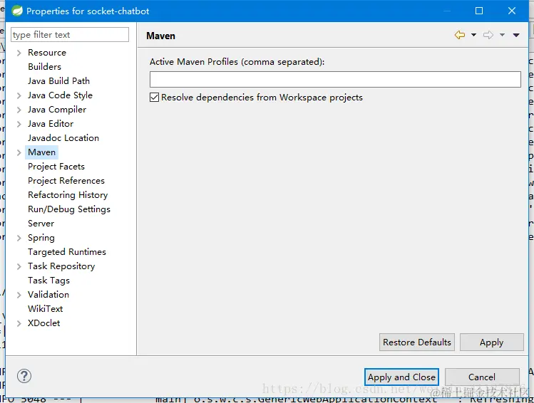 步骤-4您将在右侧的Active Maven Profiles文本框中注意到“pom.xml”。清除它并单击应用。