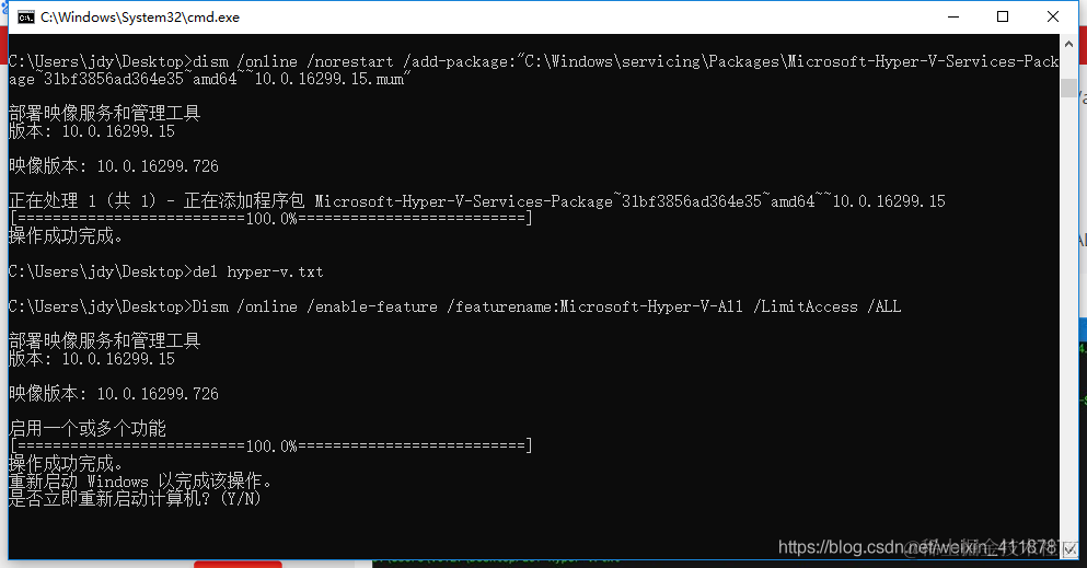 脚本执行过程如上图所示,按Y重启之后,就可以在开始菜单-所有应用-Windows管理工具中找到“Hyper-V管理器”了,打开它就能使用Hyper-V。