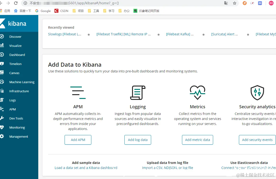 http://X.X.X.X:5601 (修改成你所用内网或公网地址)