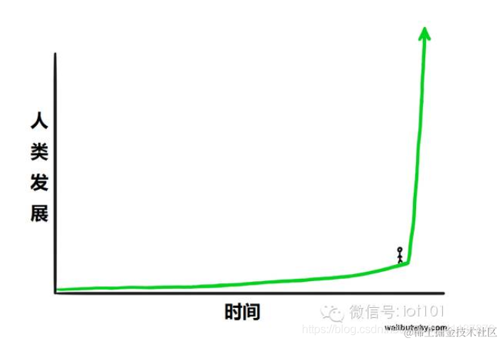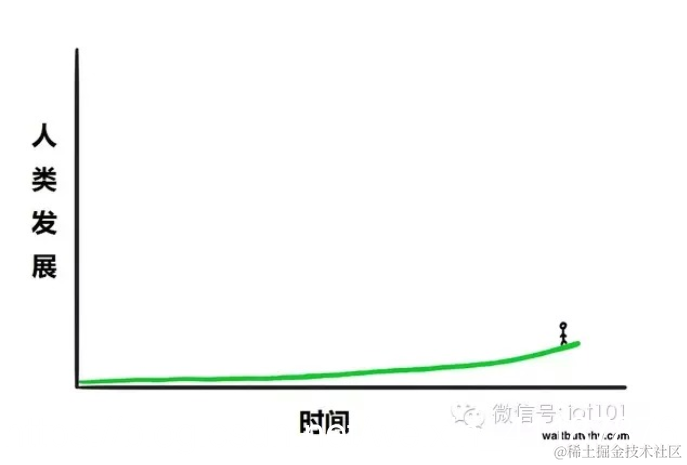 看上去非常刺激吧?但是你要记住,当你真的站在时间的图表中的时候,你是看不到曲线的右边的,因为你是看不到未来的。所以你真实的感觉大概是这样的: