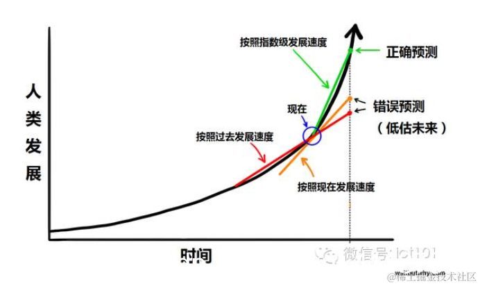 3. 个人经验使得我们对于未来预期过于死板。 我们通过自身的经验来产生世界观,而经验把发展的速度烙印在了我们脑中——“发展就是这么个速度的。”我们还会受限于自己的想象力,因为想象力通过过去的经验来组成对未来的预测——但是我们知道的东西是不足以帮助我们预测未来的。当我们听到一个和我们经验相违背的对于未来的预测时,我们就会觉得这个预测偏了。如果我现在跟你说你可以活到150岁,250岁,甚至会永生,你是不是觉得我在扯淡——“自古以来,所有人都是会死的。”是的,过去从来没有人永生过,但是飞机发明之前也没有人坐过飞机呀。