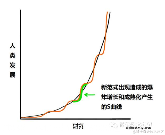 S曲线发生在新范式传遍世界的时候,S曲线分三部分