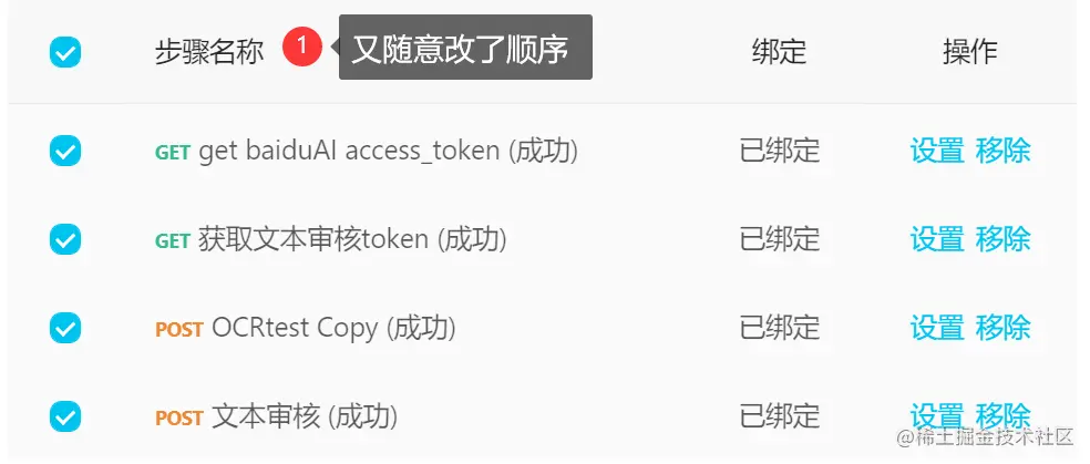在上述用例中,接口请求的步骤是从上而下的,如果想要调整接口的运行顺序,直接拖动接口到目标位置即可。 如果需要增加其他接口请求,则选择添加步骤。